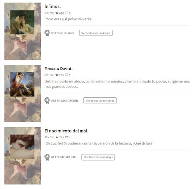 Y con respecto a la segunda pregunta, creo que eso sí lo hice mal, el problema con el crecimiento de la novela fue que ocurrió mientras iba publicando los últimos capítulos, no tan exponencialmente como dos meses después de haberla terminado que creo fue el momento donde obtuvo más reconocimiento, pero sí había aproximadamente diez lectores nuevos cada día y aquello me asustaba demasiado, no tenía idea de cómo reaccionaría la gente ante la historia, sobre todo por las ideas algo controversiales que fui planteando a lo largo de la novela, la mayoría no reaccionó bien, pero continuaron con la lectura; este pánico de ir creciendo demasiado rápido provocó que en los últimos capítulos me atascara hasta un punto donde ya no podía ni tenía ganas de seguir escribiendo la historia, pero debía hacerlo porque me gustaba y sabía que no debía sentirme así por todo lo que ocurría, que eran diez personas nuevas al día leyendo algo mío, sé que parecerá tonto pero en ese momento no sólo eran diez en mi cabeza, sino cientos de comentarios de diez personas totalmente diferentes que esperaban algo de mí. Con el tiempo fui aclarando mi mente y gracias a la ayuda de una amiga pude regresar a los personajes a quienes eran (Pues había escrito unos capítulos que nunca publiqué pero que me parecieron demasiado exagerados o malos) Corregí aquellos capítulos donde creí haberme equivocado y terminé la historia bien.